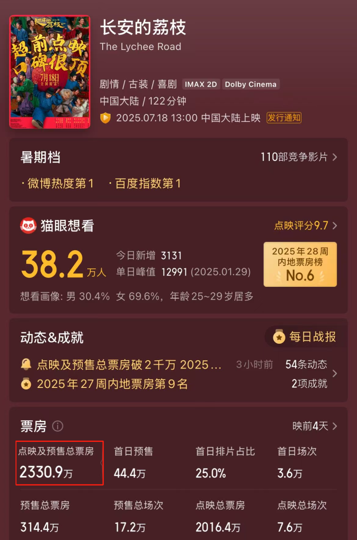 今年的暑期档表现不如人意,众多大片纷纷滑铁卢的情况下,这部《长安的荔枝》有望成为最大的黑马。